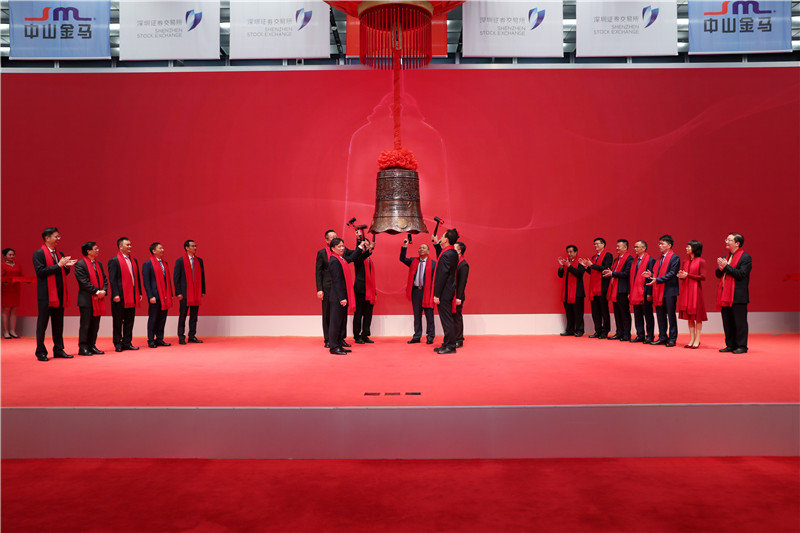 公司鄧志毅董事長在致辭中真誠地感謝了全體金馬人,他表示是他們“成就了今天的金馬”,對各級政府的支持、監(jiān)管部門的指導(dǎo)、中介機(jī)構(gòu)的共同努力以及社會各界的信任和厚愛一并致謝。馮鶴年董事長、楊文龍常務(wù)副市長隨后在儀式上致辭,向中山金馬的成功上市表示熱烈祝賀。儀式上,公司董事長鄧志毅和深圳證券交易所黨委委員、副總經(jīng)理彭明分別代表公司、深交所簽署上市協(xié)議并互贈紀(jì)念品。楊文龍、姚軍、林子平、馮鶴年、鄧志毅、劉喜旺六名貴賓領(lǐng)導(dǎo)一同敲響了上市的寶鐘。最后,楊文龍常務(wù)副市長代表市委市政府向鄧志毅董事長致送了對中山金馬的祝賀函。