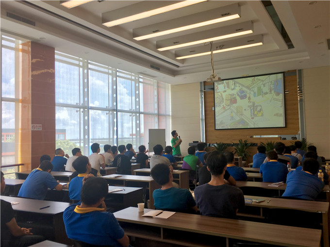 其次,精益部代表以公司員工的優(yōu)秀精益提案為例,生動(dòng)地解釋精益生產(chǎn)的必要性,提倡“全員參與,共創(chuàng)精益”,逐步深化新員工的精益意識(shí)。接著安全委員會(huì)代表通過分享真實(shí)的案例,結(jié)合公司生產(chǎn)的現(xiàn)實(shí)環(huán)境,學(xué)習(xí)各類安全事故的實(shí)際應(yīng)急救援方法,提高新員工的安全防范意識(shí)。