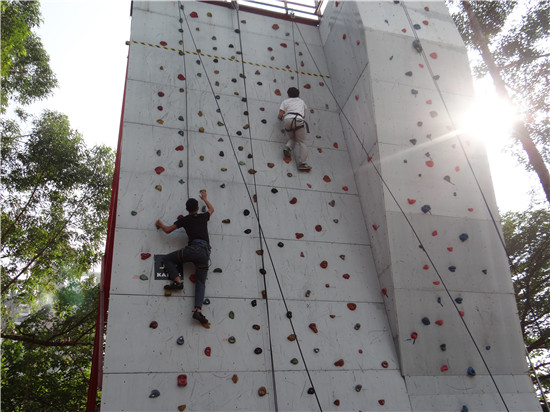 這是一場力量與速度的博弈,更是一次創(chuàng)新與文化的碰撞。延續(xù)團結(jié)精神,設以攀巖接力賽形式進行競賽活動,近50名金馬年輕力量紛紛加入到這場空前的“巖壁芭蕾”盛宴。手指關節(jié)與腳下蹬步配合用力,巧妙選擇牢固支點,克服“會當臨絕頂,一覽眾山小”伴隨而至的恐懼,這項集健身、競技、娛樂于一身,聚技巧性、驚險性、觀賞性于一體的極限運動,無論對金馬人個體或團隊,都是一種全新的磨練與體驗。