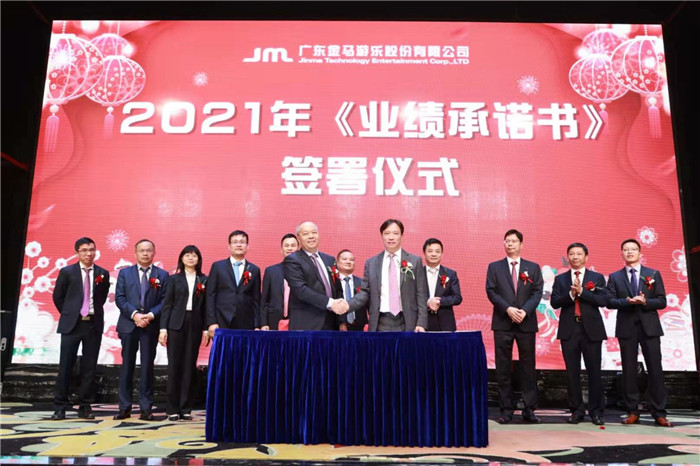 在全場人員的共同見證下,公司各部門及子公司負責人共同上臺簽署2021年《業(yè)績承諾書》,隨后在全場熱烈的掌聲中全體高管手執(zhí)輝煌線,共同為“金馬游樂”更名揭牌。更名后,公司將以嶄新面貌繼續(xù)為全球客戶提供優(yōu)質(zhì)的游樂產(chǎn)品和服務,在新征程中再創(chuàng)金馬輝煌偉業(yè)。