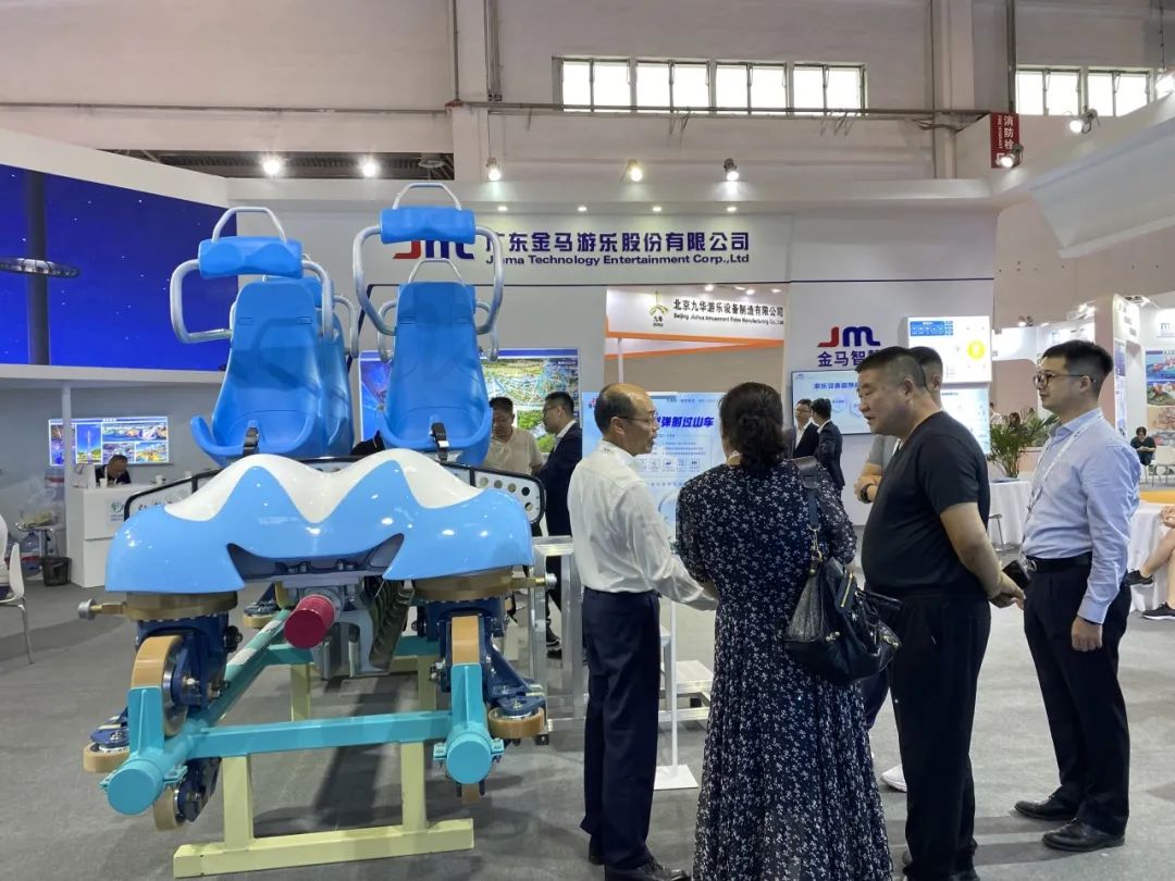 金馬文旅科技在本次展會上集中展示了飛行影院、黑暗乘騎、4D影院等多個虛擬沉浸式系列產(chǎn)品的落成案例,96座翻轉(zhuǎn)式飛行影院《飛躍泰山》、6自由度動感黑暗乘騎《盤古開天》呈現(xiàn)出的震撼效果體現(xiàn)了金馬文旅科技在沉浸式項目創(chuàng)意設(shè)計、內(nèi)容策劃及總體集成能力的跨越式進步,近兩年打造的一個又一個虛擬沉浸式高科技文旅示范標(biāo)桿項目,有效引領(lǐng)了行業(yè)創(chuàng)新,助力數(shù)字沉浸式產(chǎn)品高質(zhì)量發(fā)展,得到前來觀展、交流的行業(yè)領(lǐng)導(dǎo)、專家認可與贊賞,客商合作意向不斷。