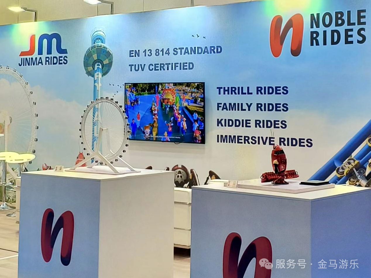 展臺現(xiàn)場,金馬游樂及旗下瑞士子公司Noble Rides的多款創(chuàng)新產(chǎn)品成為全場焦點:為德國客戶量身打造的移動懸掛過山車、符合國際安全標準的全景大橋廂摩天輪、面向家庭游樂市場的機甲互動系列等,吸引了大量專業(yè)觀眾駐足體驗。值得一提的是,金馬游樂在歐洲的首套過山車項目計劃于2026年完成交付。