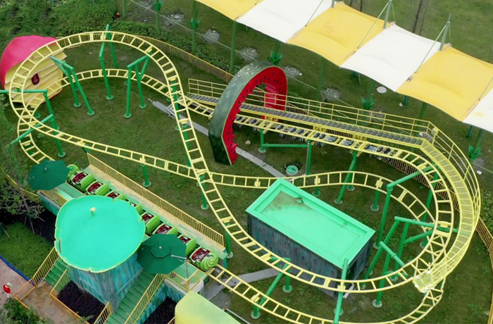一種戶外休閑娛樂設備,列車由摩擦輪驅(qū)動提升到軌道最高端后,立即轉(zhuǎn)為沿軌道自由高速滑行,時而俯沖直下,時而電掣穿梭,呼嘯而行。游客舒適地穩(wěn)坐于座椅上,盡情地領(lǐng)略失重和離心的驚險刺激的感覺,是游客的摯愛項目。