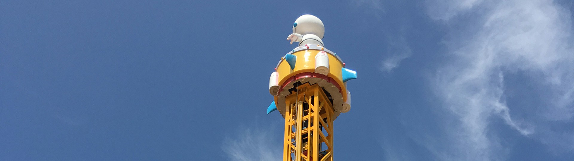 旅轉(zhuǎn)?蛙跳其部分座艙在塔體上做上下移動的同時,跟隨電機的帶動進?旋轉(zhuǎn),增加跳躍動作的復(fù)雜性,并拓寬游客的視覺空間,使乘客在過程中體驗到旋轉(zhuǎn)加跳躍的樂趣。