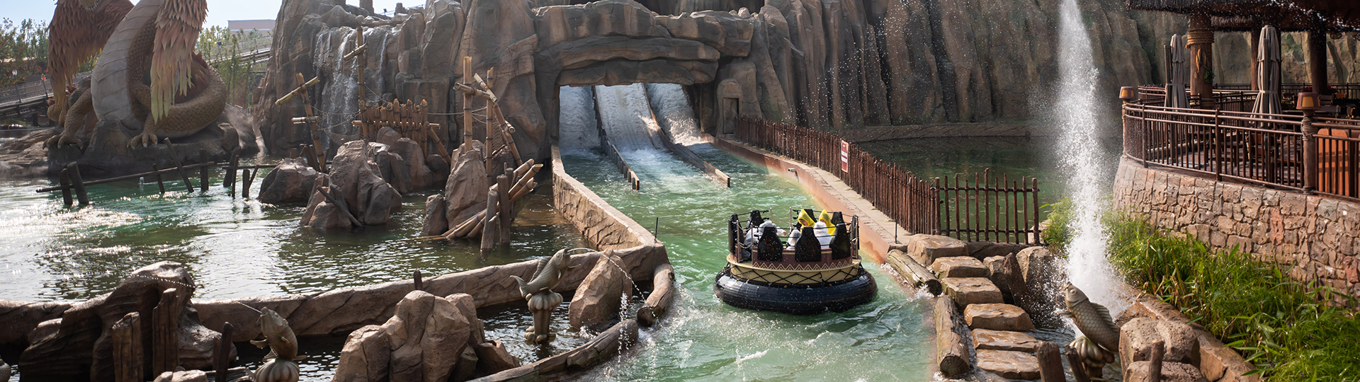 漂流以秘境探險為主題,9人大筏適合家庭、親友一起游玩。漂流速度通過巧妙的水道設(shè)計來控制,速度時而平緩時而急速,漂流筏在水道中時而旋轉(zhuǎn)時而碰撞并兩次下沖,從而讓游客體驗(yàn)到逼真河道漂流。