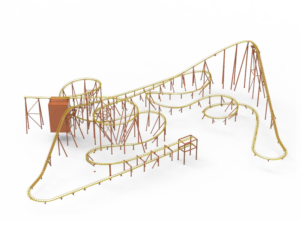 速降背沖過??是采?2次鏈條提升的礦??,結(jié)合影視技術(shù),運(yùn)?過程中包含動(dòng)感平臺(tái)、倒溜、“跳樓機(jī)”式的下墜軌道,為帶來與眾不同的過??新體驗(yàn)。