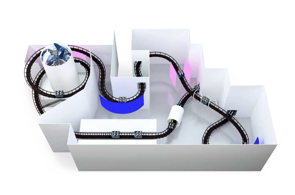 互動軌道?是?款室內休閑游樂設備,將3D交互游戲和過??兩種元素有機結合,乘客在游玩過程中既能體驗3D?體的主題視覺效果,?能體驗過??刺激,還互動參與激烈的射擊競賽,是?款新穎的架空游覽?項?。
