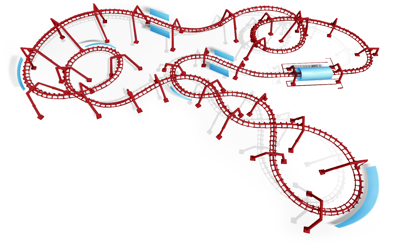 自帶動力的懸掛式過山車實現(xiàn)了在軌道任意位置變換速度,時速可高達 32km/h,在高清電影、科技特效的影視相融合下,使乘客完全沉浸在游戲的樂趣和刺激中。